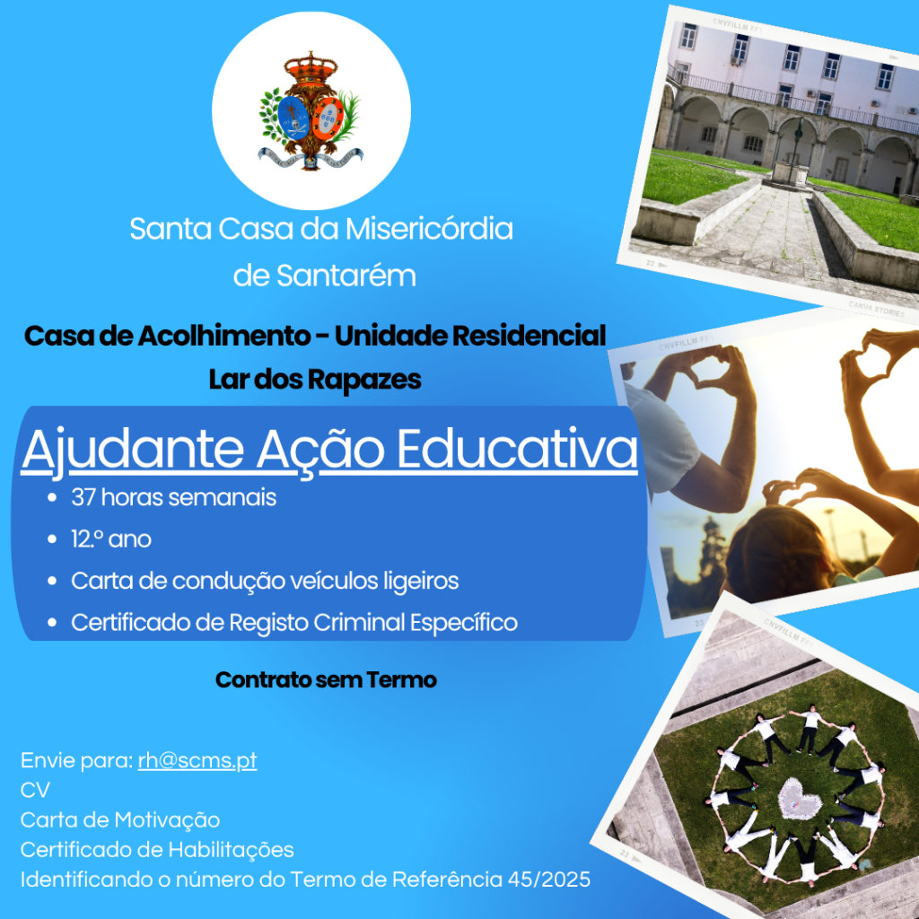 | Obrigatórios: (fator eliminatório) | 12 ano Carta de Condução Veículos LigeirosCertificado de Registo Criminal Específico (envolve trabalho com menores de idade) | |
