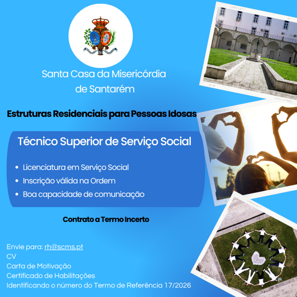 | Obrigatórios: (fator eliminatório) | Licenciatura em Serviço Social Os candidatos devem assegurar que possuem as suas habilitações académicas devidamente reconhecidas e que a sua situação está regularizada para o exercício de atividade profissional em Portugal. Inscrição válida na Ordem dos Assistentes SociaisConhecimentos da legislação e normativos aplicáveis às ERPIBoa capacidade de comunicação e relacionamento interpessoalBons conhecimentos de ferramentas informáticas na ótica do utilizador | |